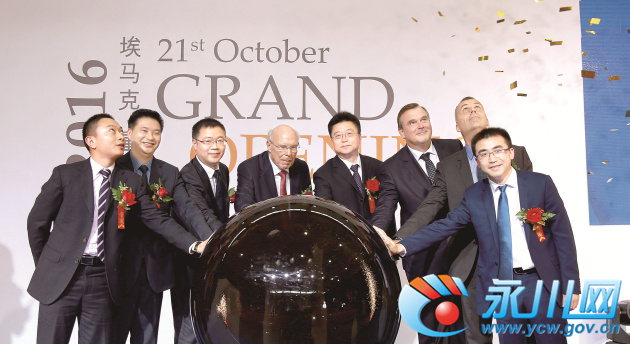 埃马克集团创始人及股东NorberHessbrueggen(罗伯特·汉斯)、埃马克集团CEO Markus Hessbruegen(马库斯·汉斯),永川区委书记滕宏伟、区长罗清泉,区委常委、区委办公室主任、永川高新区党工委书记罗晓春等出席开业仪式并共同启动开业水晶球。