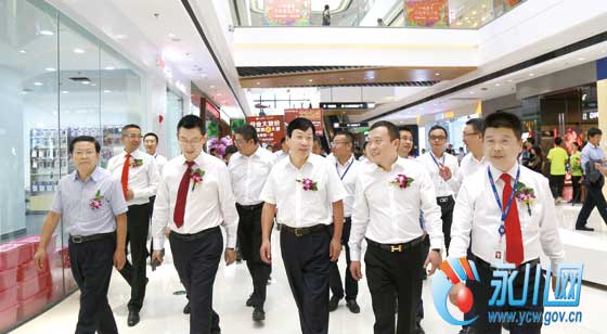 ????????9月16日永川万达广场正式开业运营。区委书记熊雪,区政协主席刘祥全,万达集团商管公司副总裁陈洪涛,重庆万达项目公司总经理汤宇宏等出席开业庆典。图为熊雪一行在陈洪涛、汤宇宏等陪同下,参观万达广场商业街。 记者 范 辉 摄